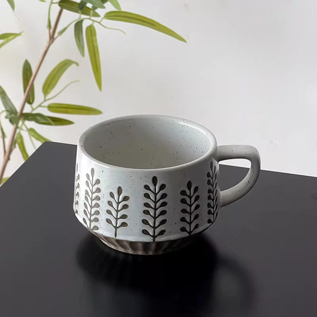 Retro Stoneware Coffee Cup & Saucer Set – Ceramic Latte Art Mug for Home & Café Use